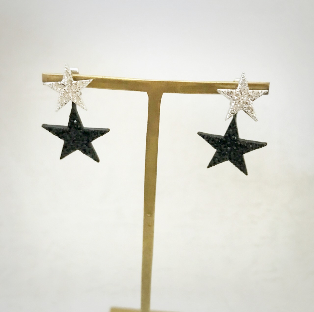パヴェスターシルバーのピアスがクールで大人可愛いピアスです。一回り大きなブラックパヴェスターキャッチが耳元を華やかにします。シンプルなファッションのアクセントとして、オールシーズンお使いいただけます。