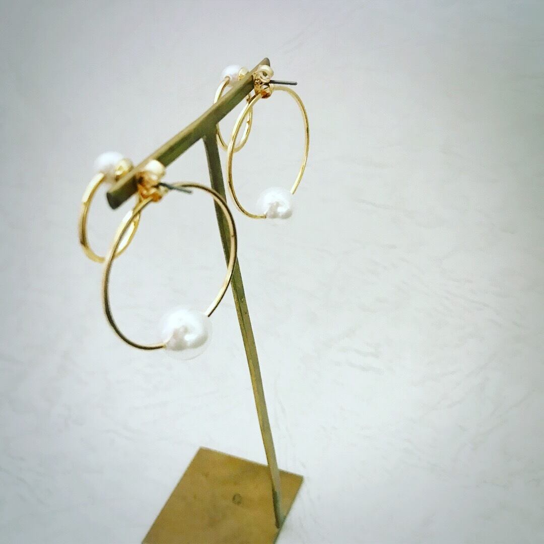 クールなサークルピアスとフェミニンなパールが組み合わさり女性らしさを演出します。 顔周りが華やかになる大人かわいいピアスです。