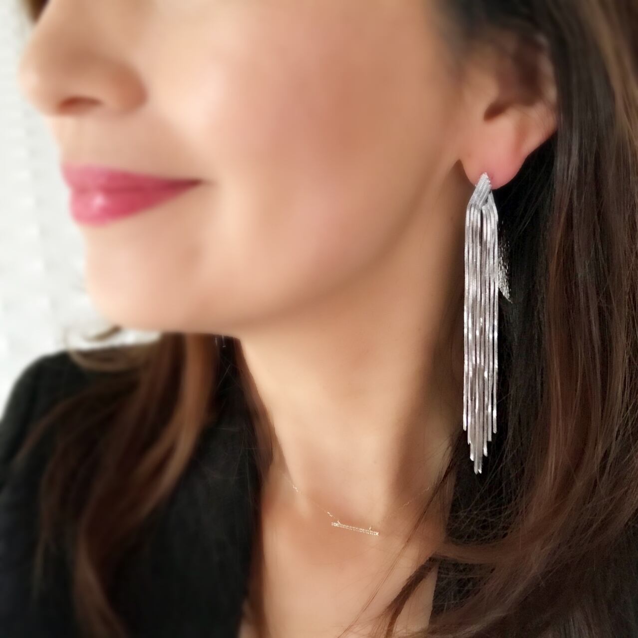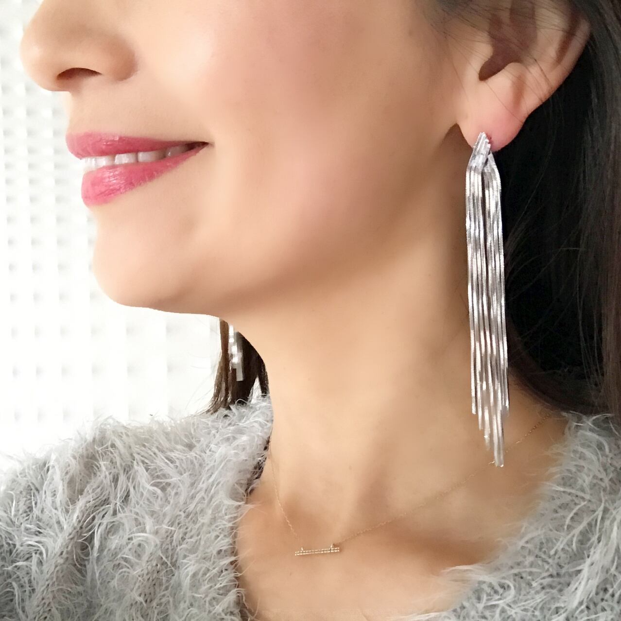ビックシルエットのボリュームチェーンピアス。 シンプルながらもゴージャスなボリュームラインで女性らしい耳元を演出します。 大きめサイズは遊び心があって、大人かわいいピアス。 ゴールド(シルバー)の長めのラインが魅力的なピアス。 シンプルながらも艶のあるゴールド(シルバー)がクールな耳元を演出します。