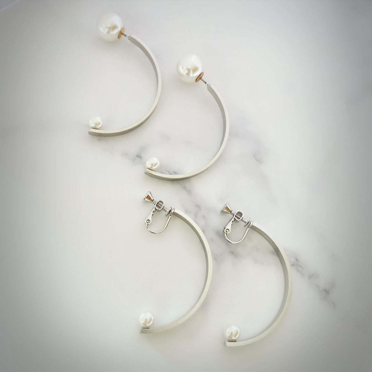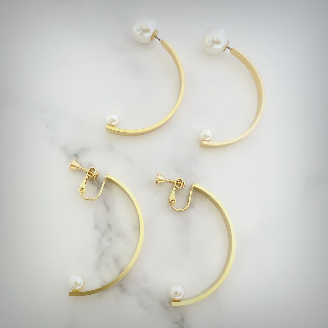 ビックシルエットのイヤリング。 大きめサイズは遊び心があって、大人かわいい。 合わせやすくデイリーにご使用できます。大人カジュアルスタイルのポイント。 シンプルながら、マットゴールド(マットシルバー)がクールな耳元を演出します。
