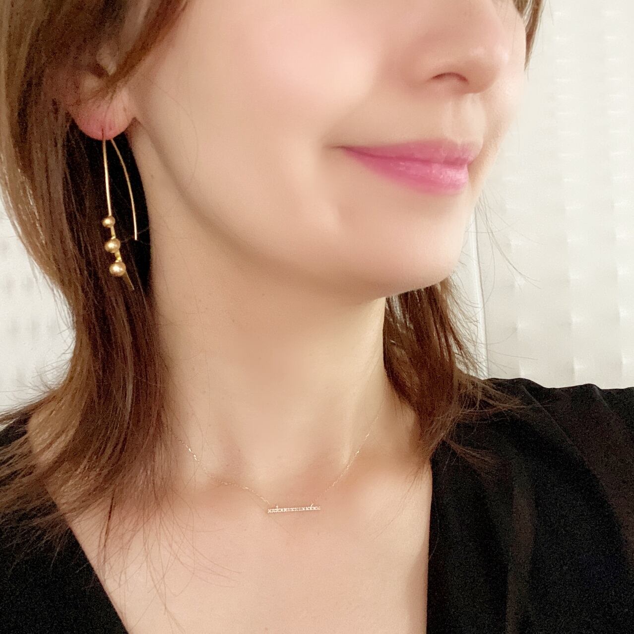 ビックシルエットのマーキスピアス。 シンプルながらもサイズの違うスリーボールがアクセントとなり女性らしい耳元を演出します。 大きめサイズは遊び心があって、大人かわいいピアス。 合わせやすくデイリーにご使用できます大人カジュアルスタイルのポイントに。